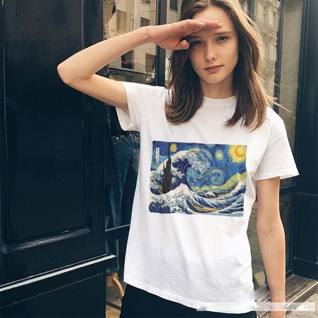 Model Number: hot Tumblr Hip Hop Graphic Tees women Fashion Ukiyo-e Vincent Van Gogh